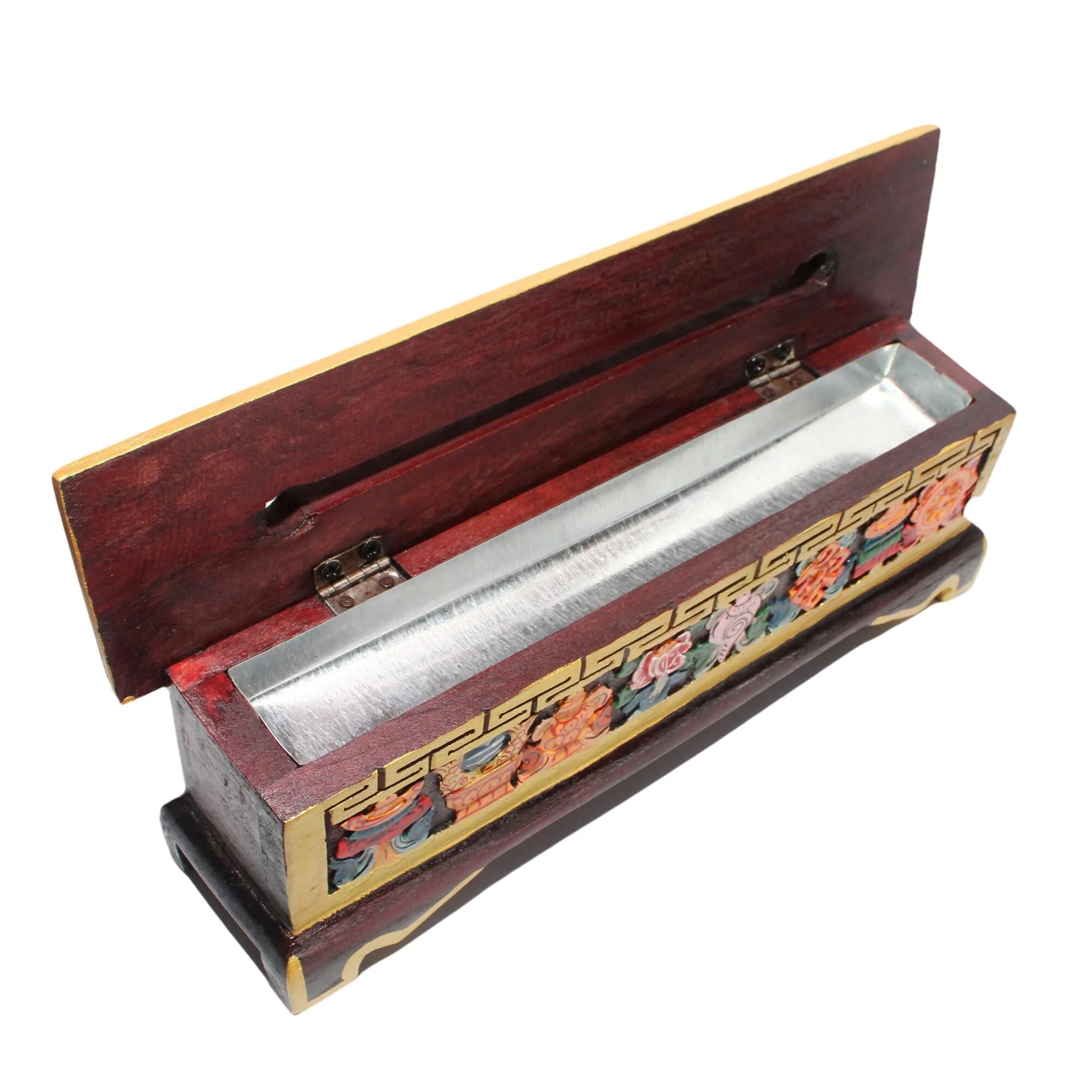 These incense burner boxes are delicately carved and hand-painted by hand.